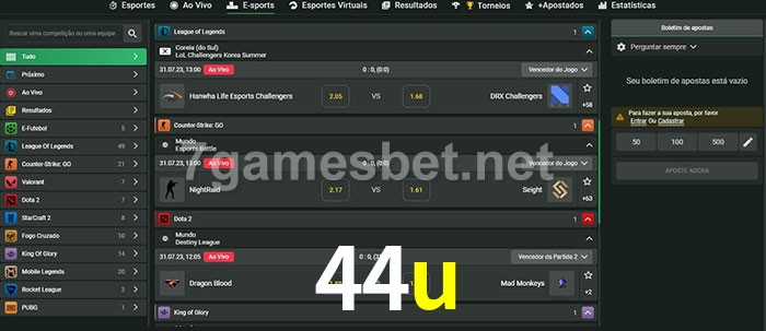A aposta 44u oferece aos jogadores a experiência mais conveniente de apostas em eSports!